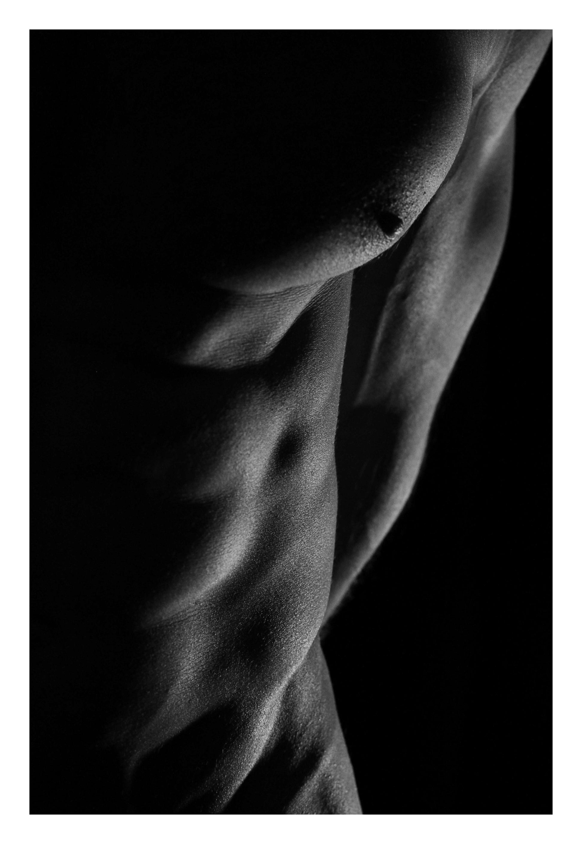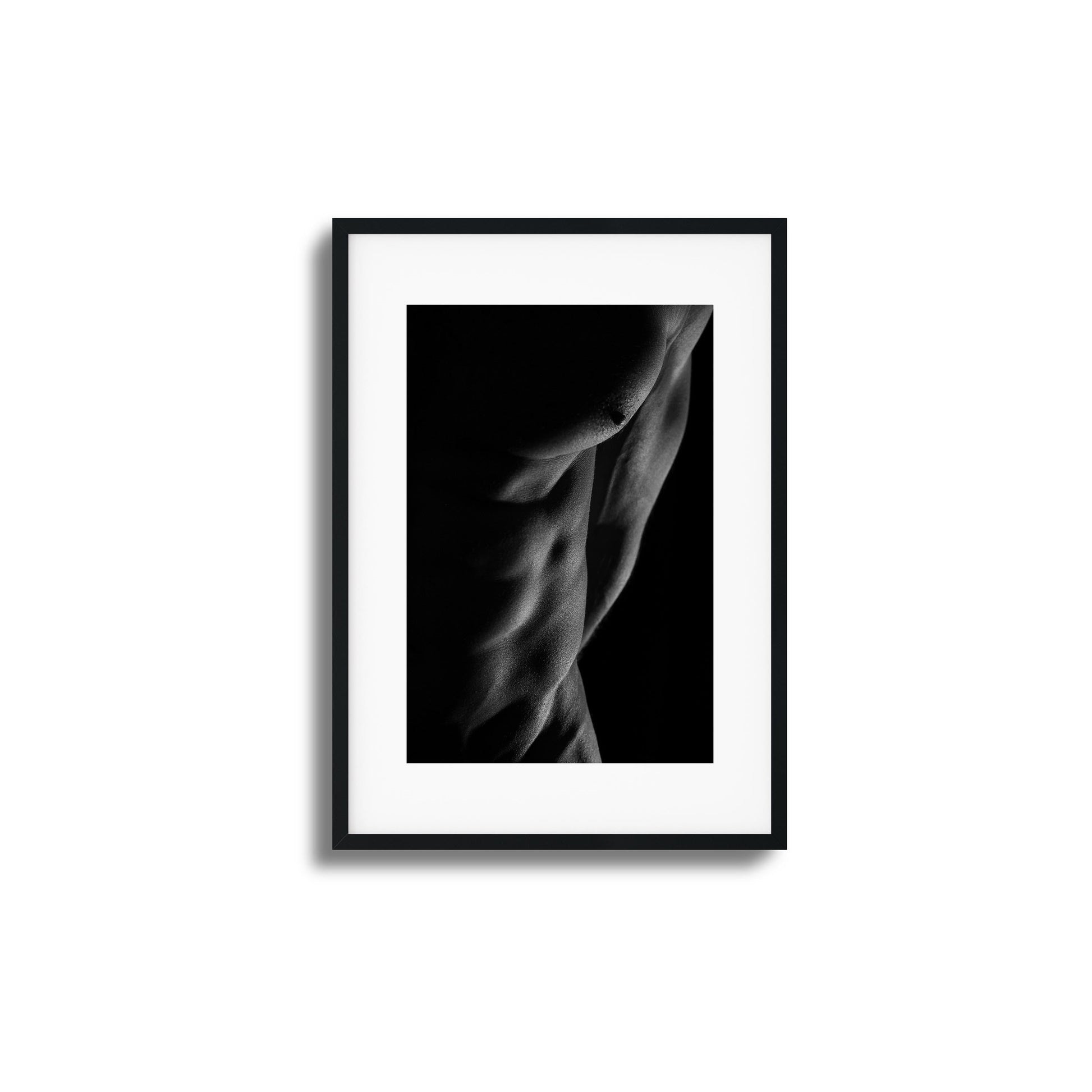 Framed art that defines the male torso in shadow. Perfect framed photography and wall art for contemporary interiors.