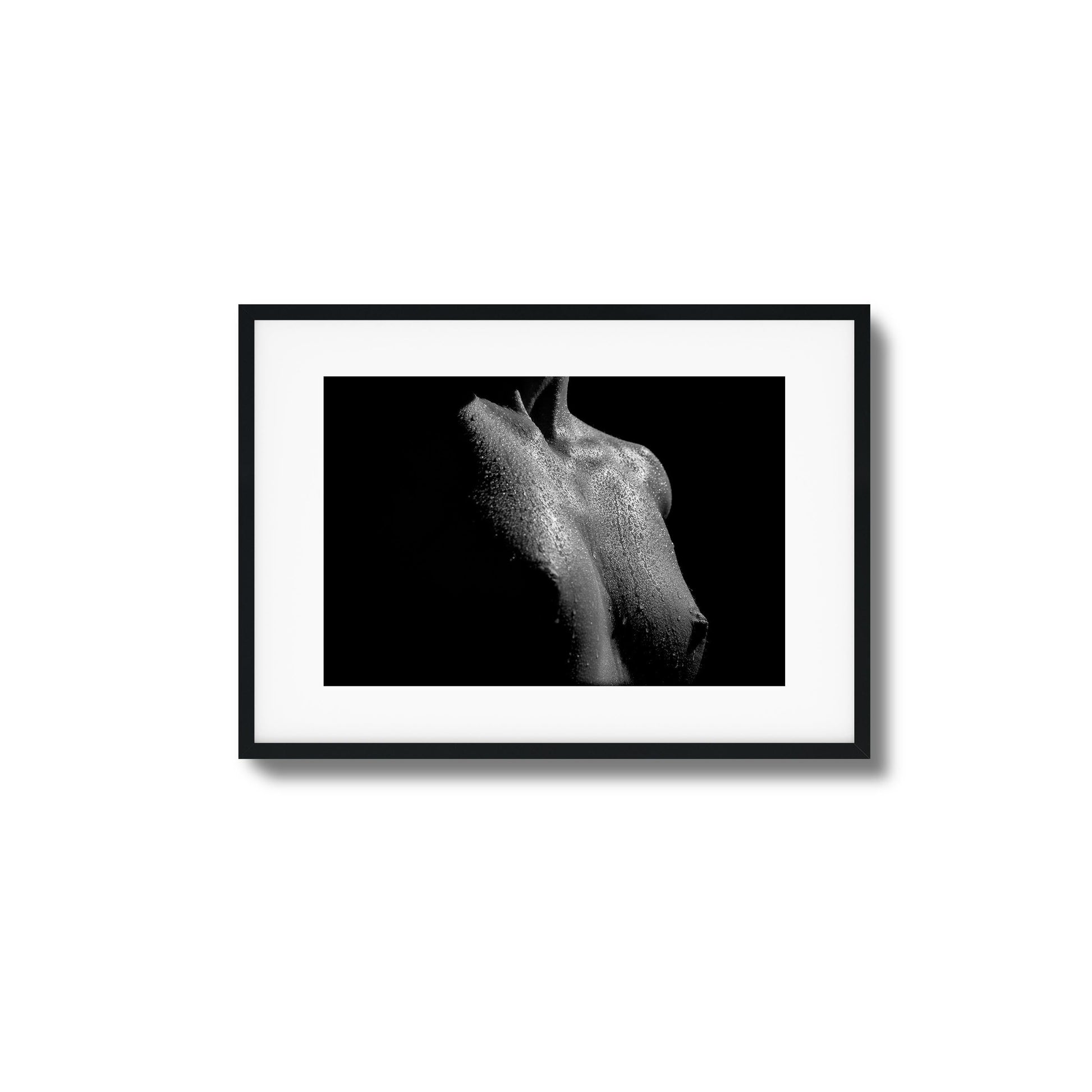 Glistening skin. Soft shadows. This close-up nude in black and white captures feminine curves with bold elegance. Artistic and provocative.