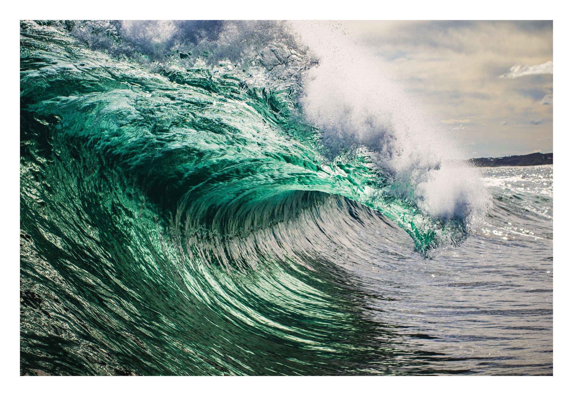 A monstrous emerald wave crashes forward with wild force. Energy, chaos, and nature’s raw power in one image. Museum-quality Framed Art.