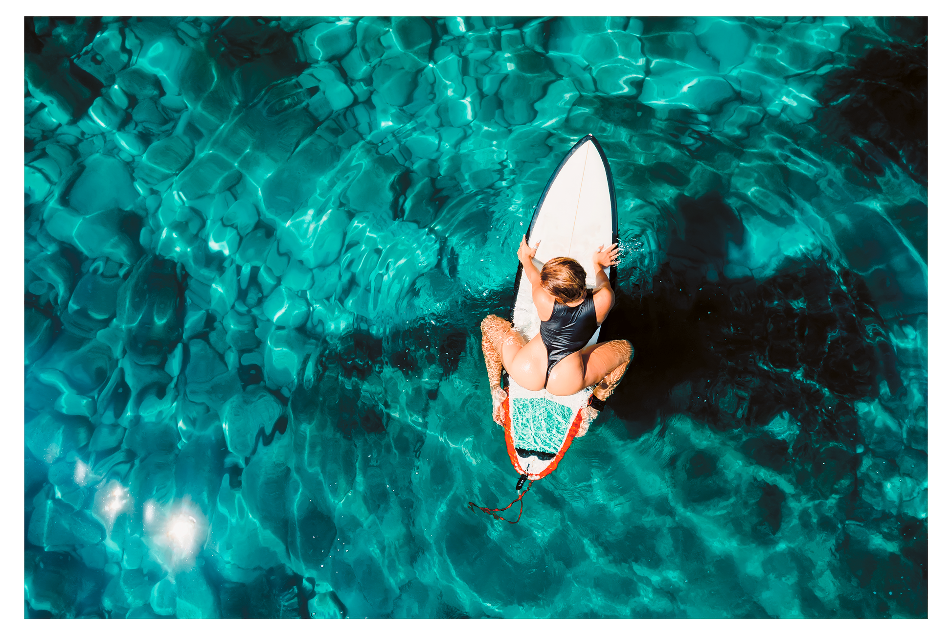 Glide framed art captures the elegance of a surfer poised on a board, ready to embrace the ocean's flow. Ideal for lovers of the sea and adventure.