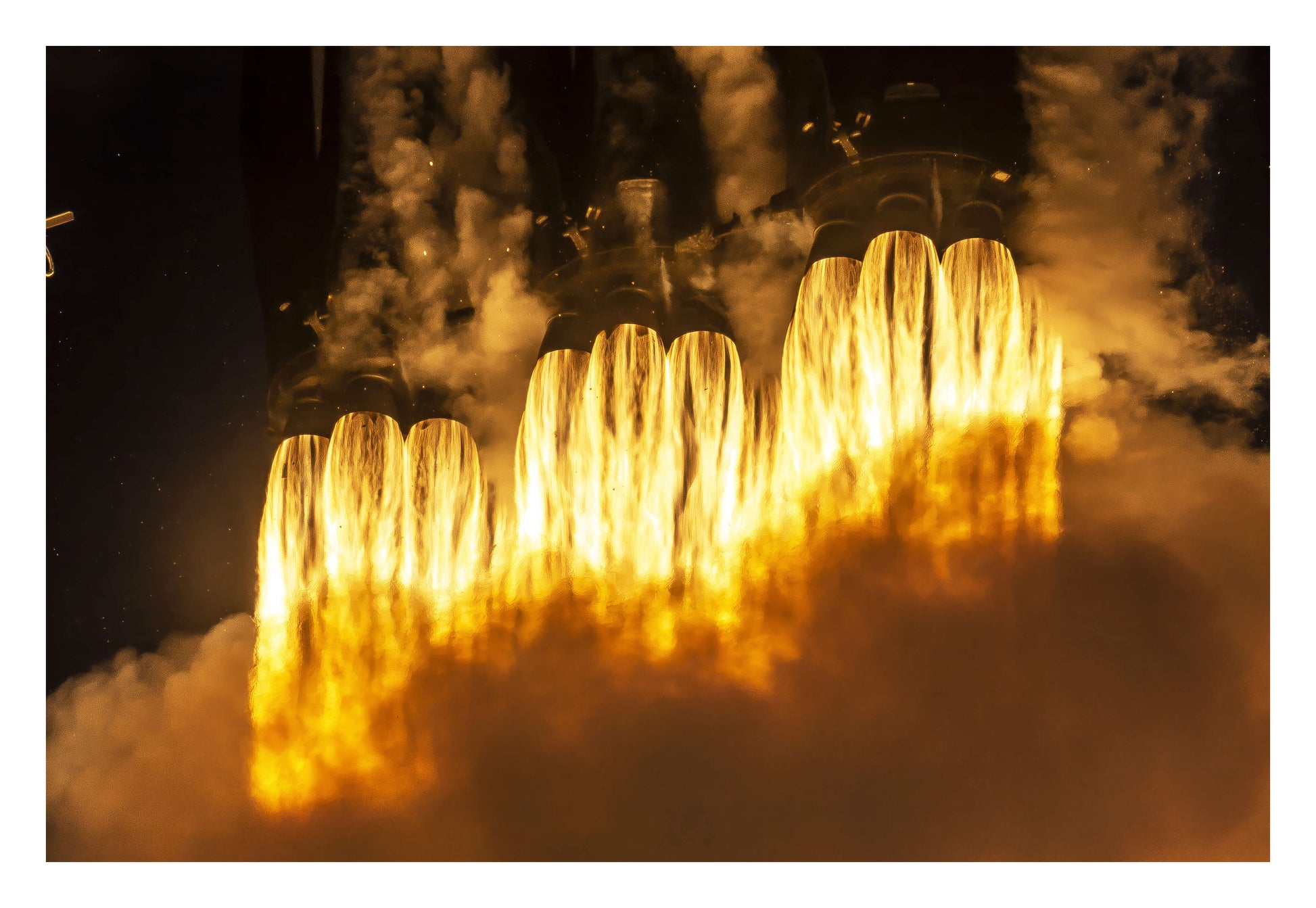 This framed artwork captures the raw power of a rocket's liftoff, showcasing brilliant flames and energy, perfect for inspiring ambition.