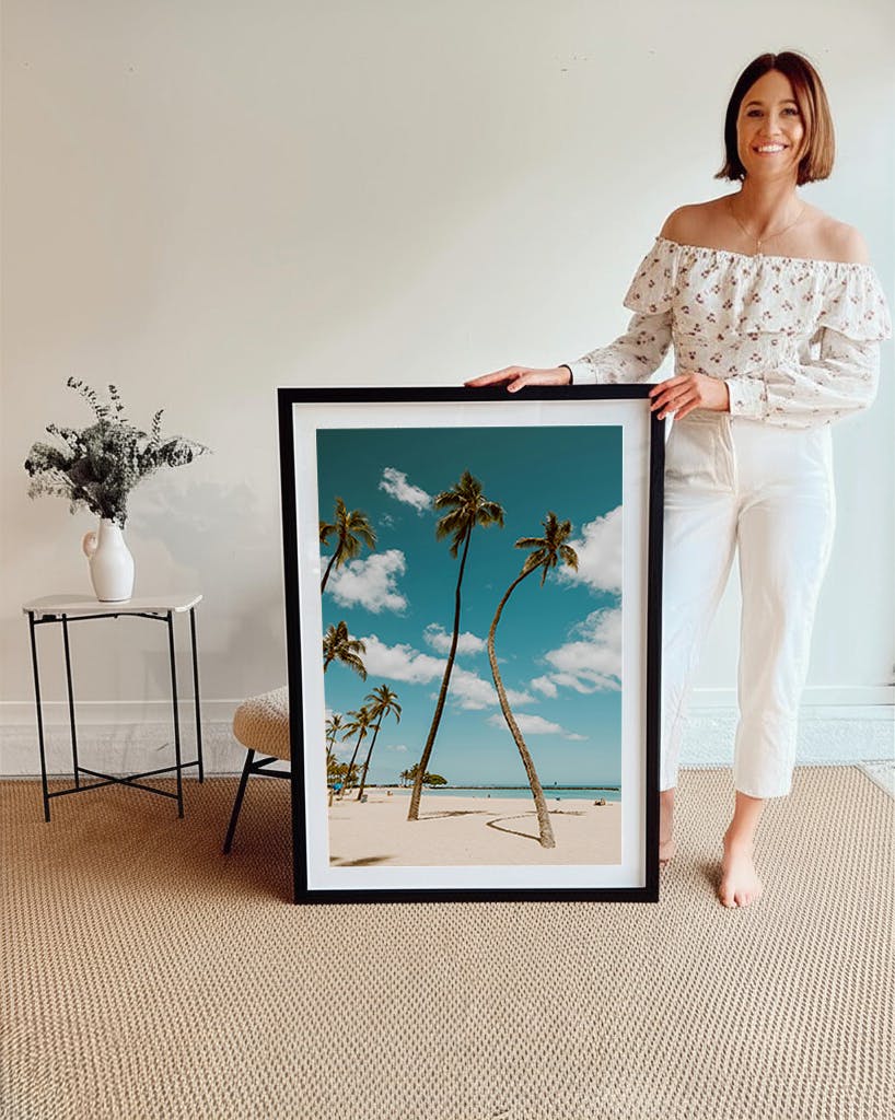 Our frames are crafted from solid wood with a 0.75″ (W) × 1.125″ (H) profile for Small, Medium, Large, and Giant sizes, and an upgraded 1″ × 2.25″ gallery frame for Collector prints.