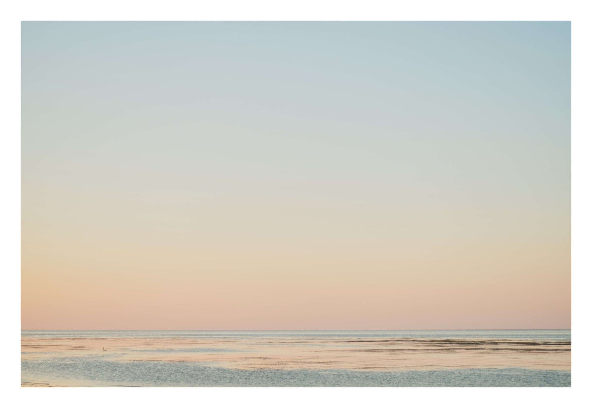 A smooth blend of sunset tones and gentle ocean makes this minimalist photo soothing.