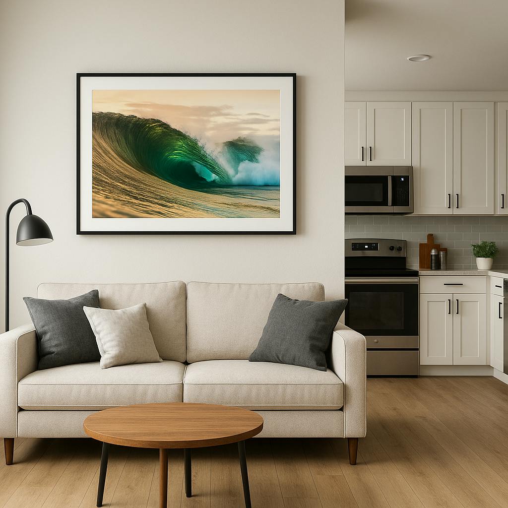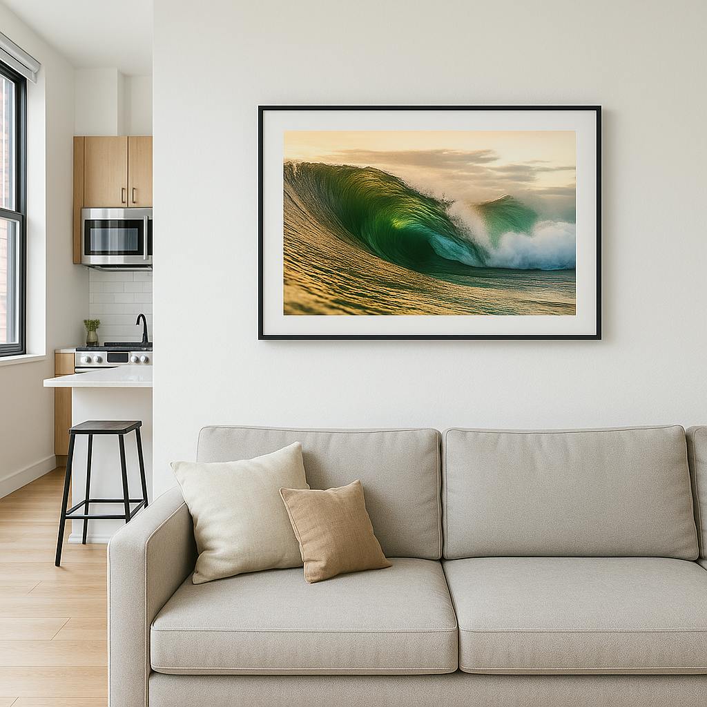 Our frames are crafted from solid wood with a 0.75″ (W) × 1.125″ (H) profile for Small, Medium, Large, and Giant sizes, and an upgraded 1″ × 2.25″ gallery frame for Collector prints.