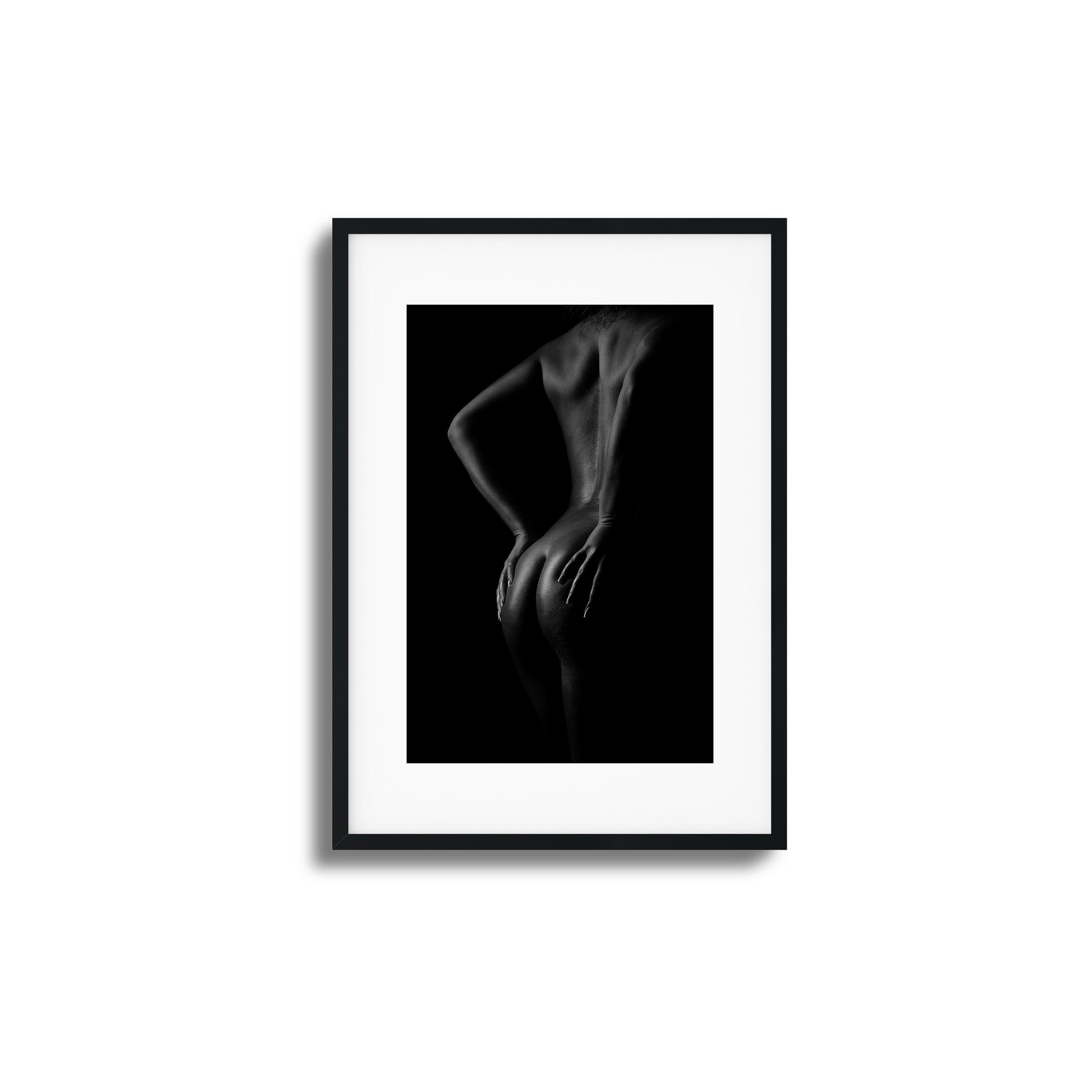 Light kisses the curves of a nude body in this black and white photo. Bold smooth elegant.