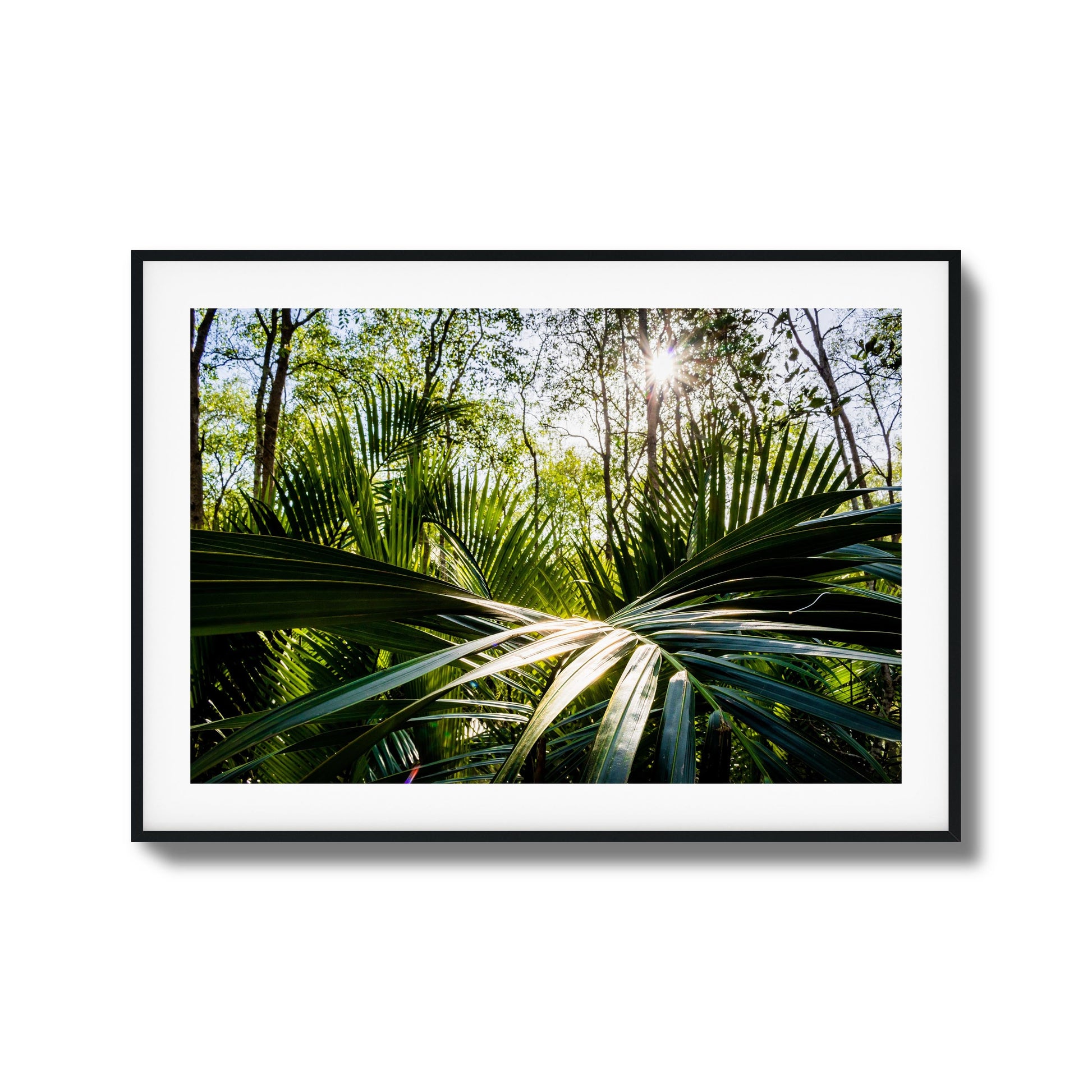 Lush jungle palms bask in golden sunlight—this vibrant nature scene brings energy and peace.